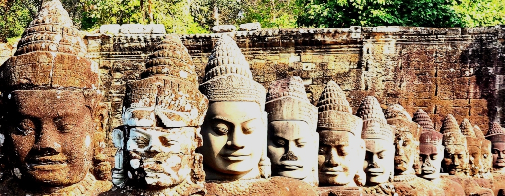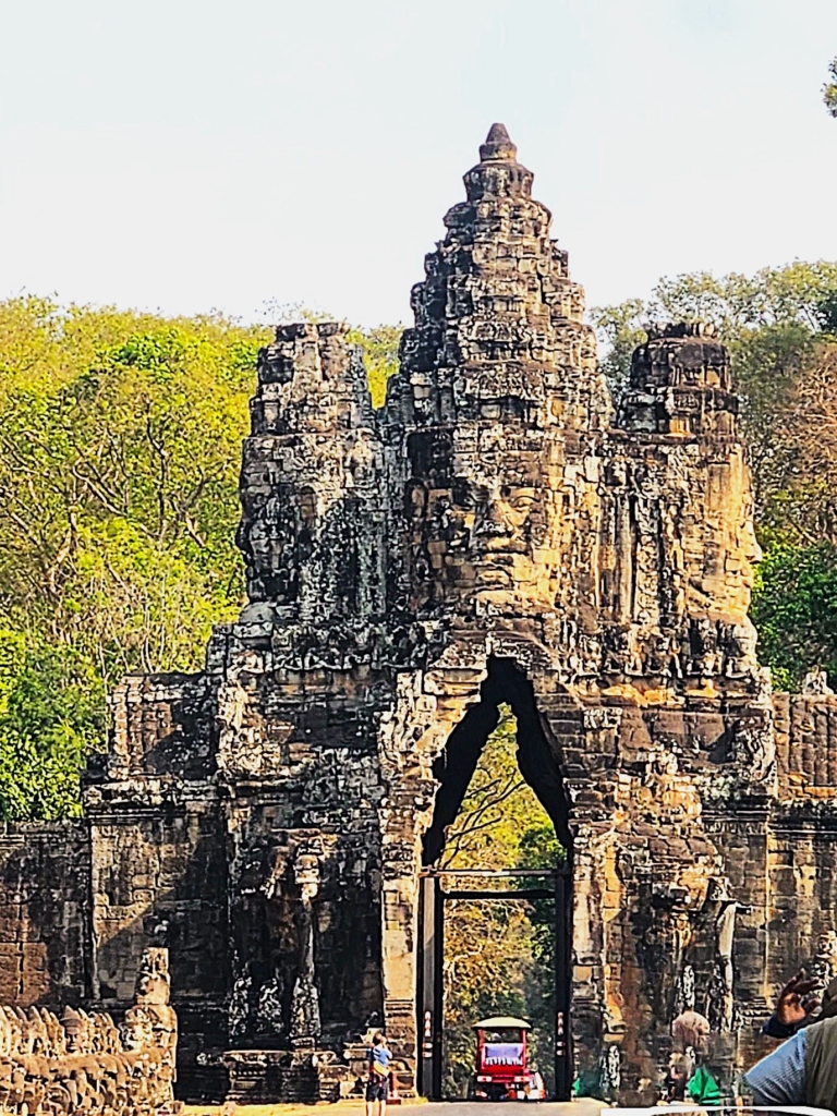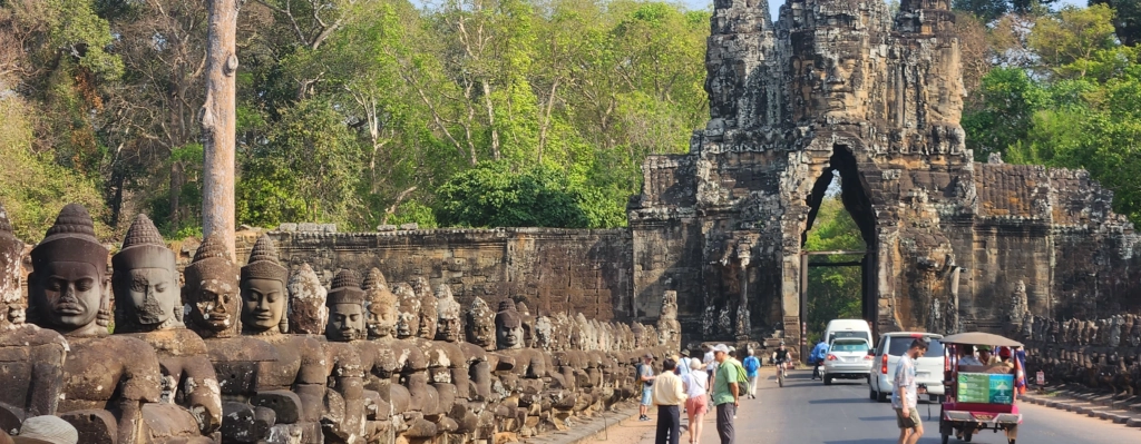There are five monumental gates to enter the city – four aligned with the cardinal directions, and a fifth on the eastern side, the “Gate of Victory”—for good measure! At its heart, geographically and spiritually, is the enigmatic Bayon Temple, but our first stop was the South Gate, also known as Tonle Om.