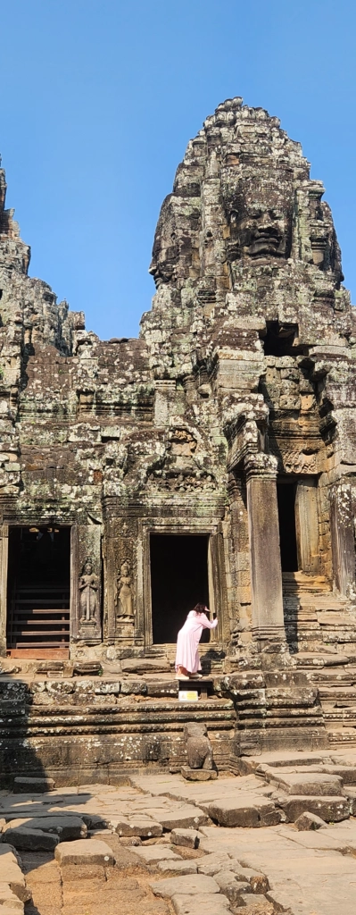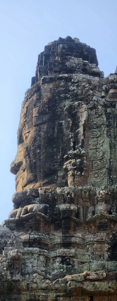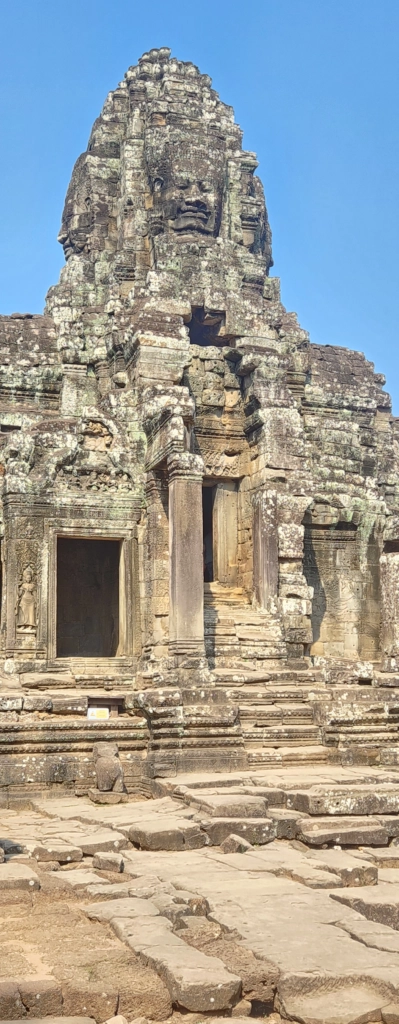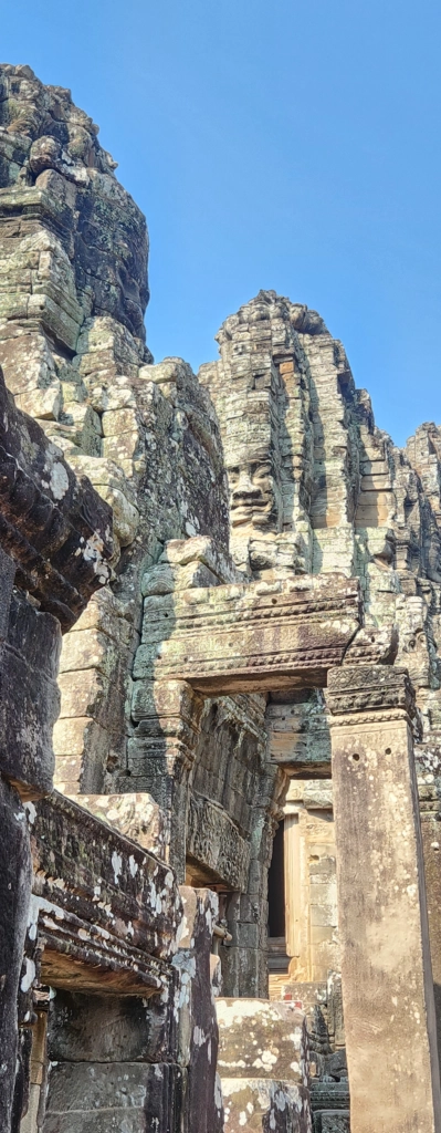 What captivated me most were the iconic face-towers. Lining the galleries and rising above the temple, these towers are adorned with four colossal carved faces, each gazing serenely in a cardinal direction.