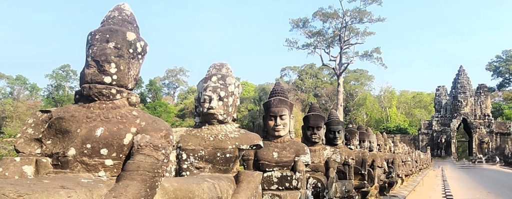 The approach to the gate was mesmerizing. The beginning of the causeway is adorned with immense stone carvings of the seven-headed Naga serpent.