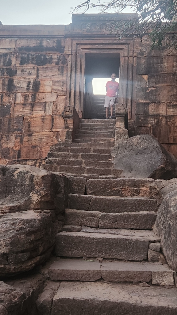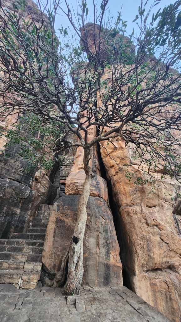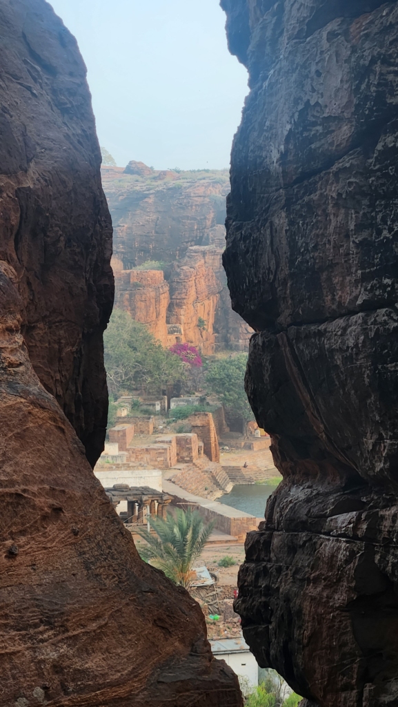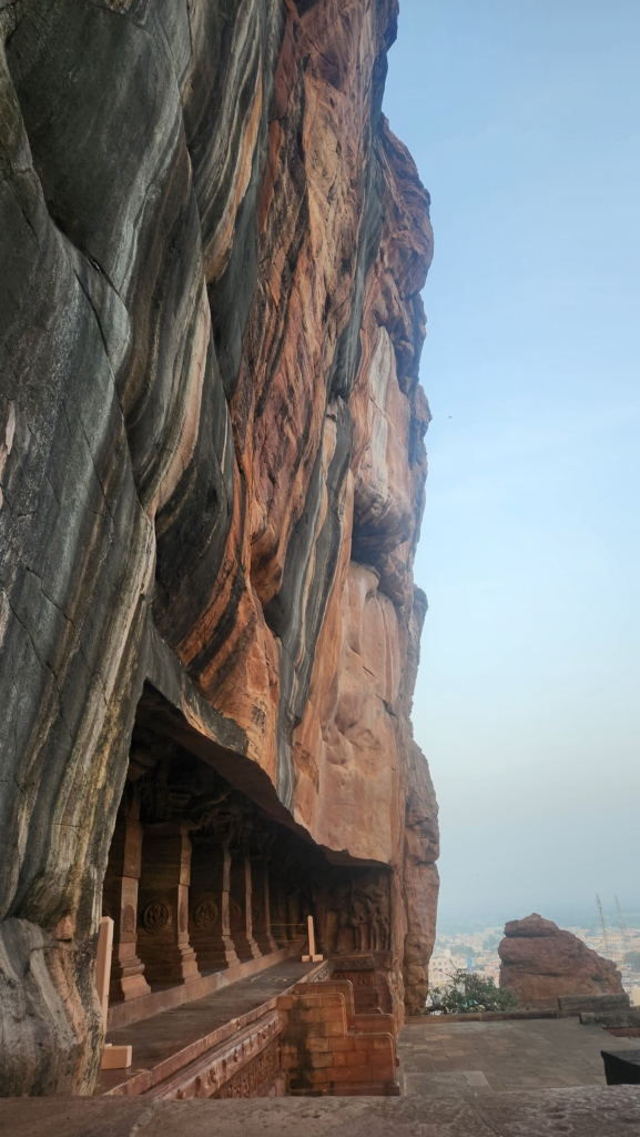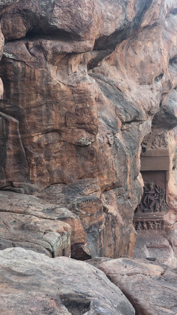 Since we were short on time, we decided to focus on the Badami caves themselves and enjoy the view of the lake and temple from the higher parts of the caves. These caves are like a multi-story condo for ancient rock art enthusiasts, spread out over four floors of sandstone goodness.
