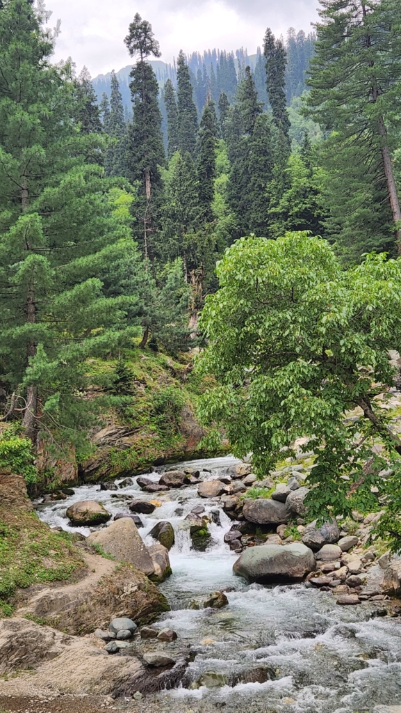 Venturing to a stream marked as Wadar by Google Maasi, we were joined by Mr. Bhat, a botanist. He shared insights into the distinct flora of the region, distinguishing features between pine trees in Kashmir and Jammu, and the industrial uses of tree resins. Mr. Bhat’s knowledge enriched our forest experience, although he also cautioned about black bears in the area, recounting a recent sighting. We learned about the symbiotic relationship between the forest department and the nomadic tribes, who shared crucial forest information.