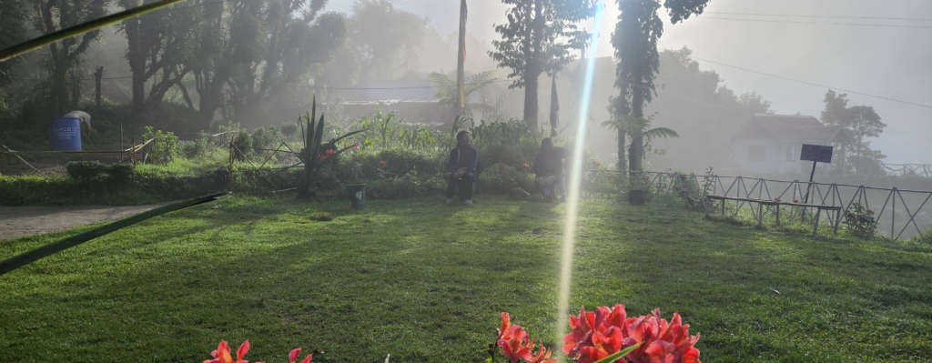While we longed for a steaming cup of tea, Kunal and Jyoti were still asleep when we called out to them, prompting Lapha, a staff member at the homestay, to fetch a gas cylinder for our morning brew. Eventually, our tea arrived, accompanied by a hearty breakfast. Samir arrived punctually, signaling it was time to bid farewell to the misty mountains. We exchanged warm goodbyes with Kunal and Jyoti, grateful for their hospitality.