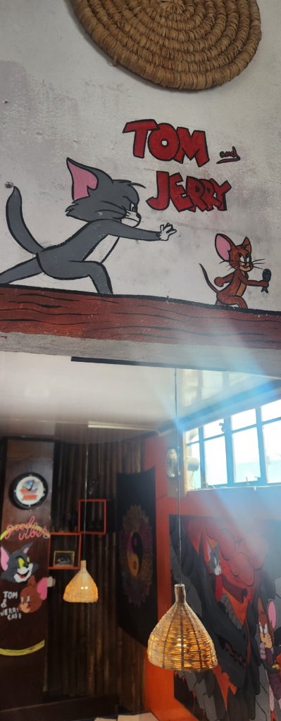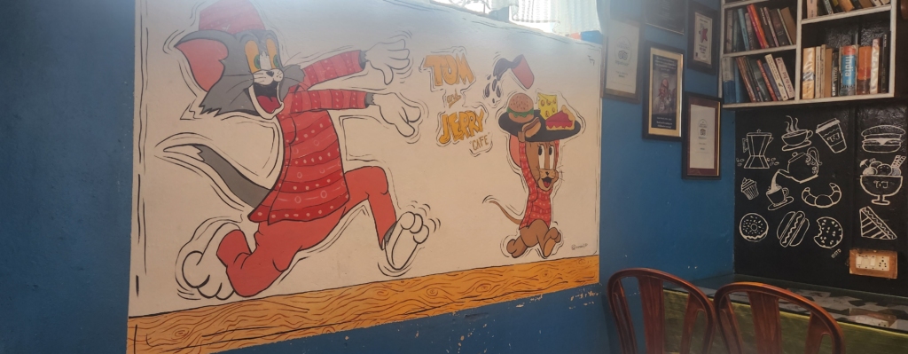 Deciding to let MunMun and Tazo indulge their passion for shopping, I found myself at Tom & Jerry. The café, though small with just 5-6 tables, boasted a vivacious interior adorned with walls painted of Tom & Jerry. Despite its size, it offered a comprehensive menu.