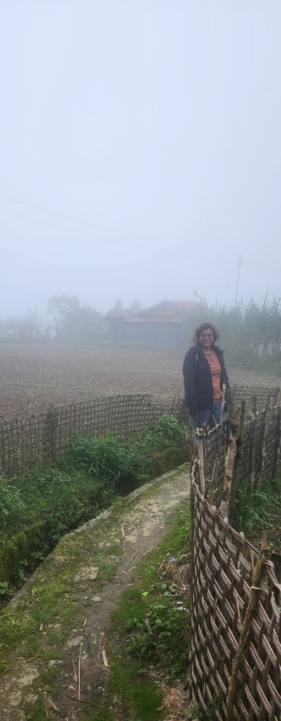 Enchanted by the homestay’s location, I wished we had a few extra days to savour Kunal’s hospitality and explore the surrounding area. Dinner, though simple, was delicious, prepared with care by Kunal and Jyoti. The toilet, enclosed within a tin structure inside the villa, was surprisingly embraced by MunMun as a luxury in this region. With our shopping safely repacked, we called it an early night, leaving the windows open to relish the cool mountain breeze. Samir was scheduled to pick us up at 9 am sharp the next day for our airport transfer – a bittersweet farewell from the serene hills of Chimney and the warm hospitality of its people.