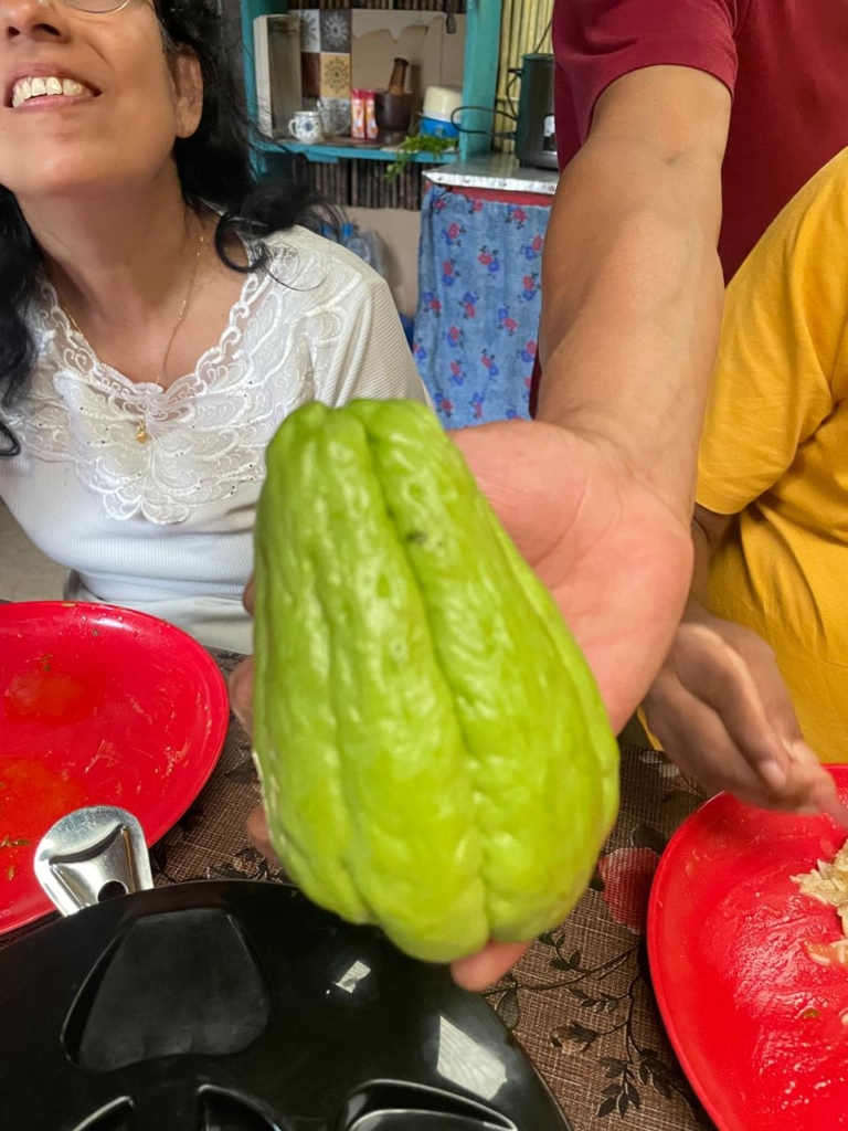 As we savored Tongba, Jamuna busily prepared our dinner, including a local vegetable known as “Ishkush,” resembling an elongated guava. Knowing that the vegetable market was at least half an hour’s walk from our homestay, we appreciated her effort to procure this local delicacy for us. We raised our glasses to Ishkush and Nima’s family well-being, enjoying the unique flavour of Tongba and the warm hospitality of our hosts.