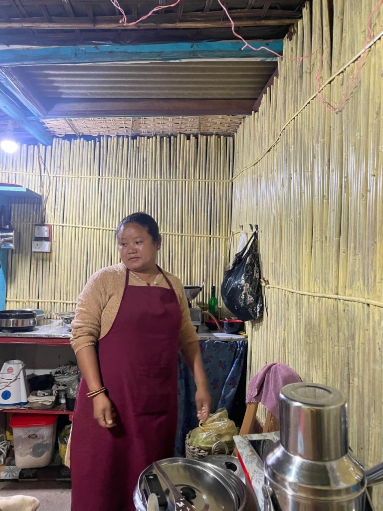 We settled down for a light lunch prepared by Jamuna in their cozy kitchen. We also asked Jamuna if it was possible to include some local delicacies like curved fern in our dinner. Nima kindly offered to arrange Tongba for a pre-dinner drink session. He suggested several activities for us for the following day, including exploring the nearby woods, visiting a Heritage Park with an old chimney, and checking out other local points of interest accessible by a short drive.