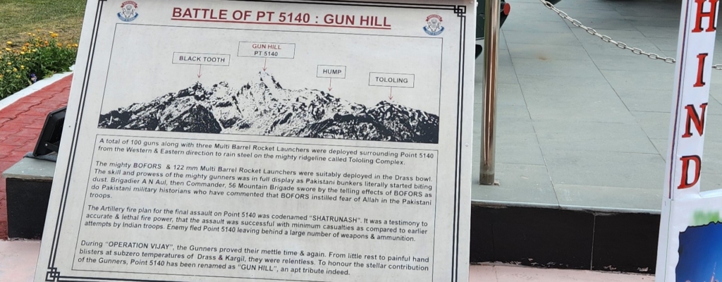We were given a guided tour of the memorial hall where the military history of the campaign was provided in detail, along with photographs from the time of the war. The memorial also showcases weapons and equipment related to the Kargil War and also contains information panels and maps detailing the military operations carried out during the Kargil War. It offers visitors an opportunity to understand the strategic aspects of the conflict and insight into the challenges faced by the Indian armed forces during the conflict.