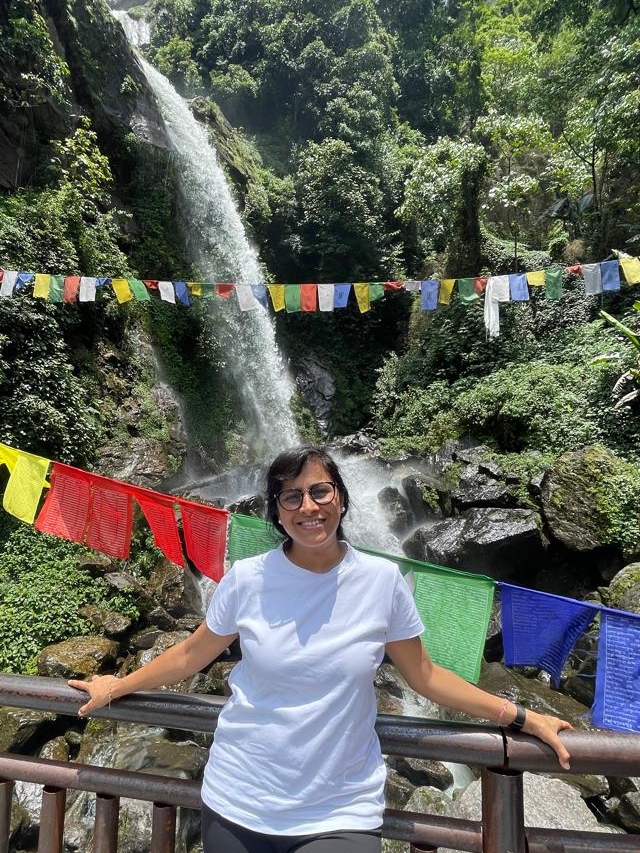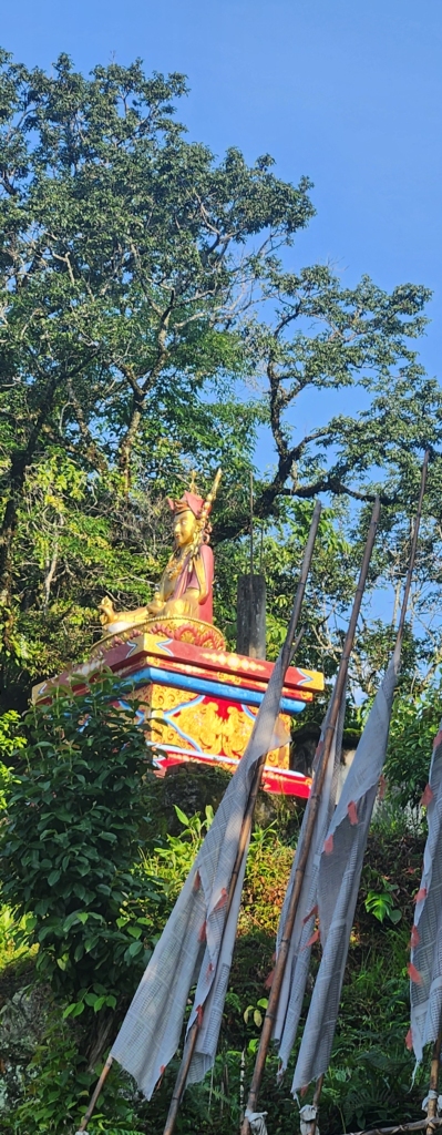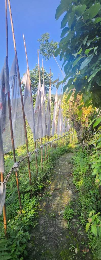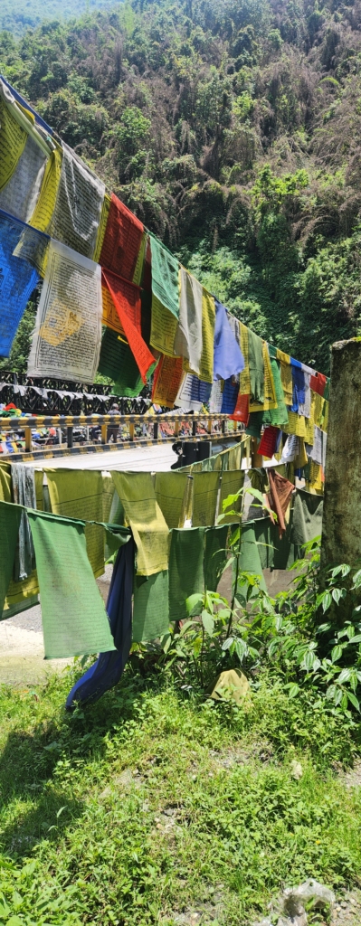We passed by several tourist spots on the outskirts of Gangtok city, but opted not to explore them until we reached a small bridge adorned with Tibetan prayer flags. The colourful flags – blue for sky/space, white for air/wind, red for fire, green for water, and yellow for earth – against the serene backdrop made for a perfect photo opportunity. We were fortunate there were no other tourists around, allowing us to capture the essence of the moment undisturbed.