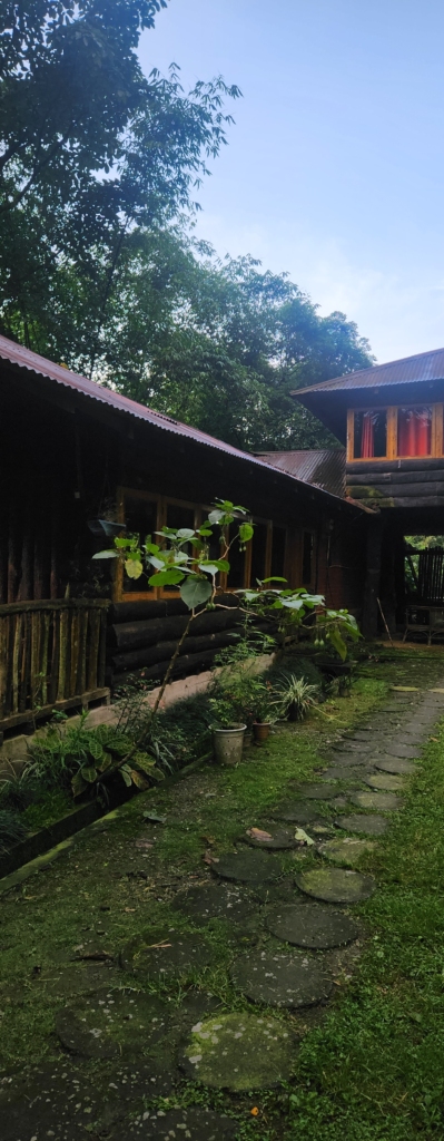 Suddenly, our phones picked up a mobile network signal, allowing us to coordinate with Sanjeev, the caretaker of our homestay at Dzongu. He was waiting for us further ahead. Our homestay, nestled deep within the jungle, remained unseen even when we were just a few meters away. Constructed primarily of wooden planks likely sourced from the surrounding farms, the homestay featured our room on the first floor, adjacent to the lounge and dining area. The backyard even boasted a couple of tents.
