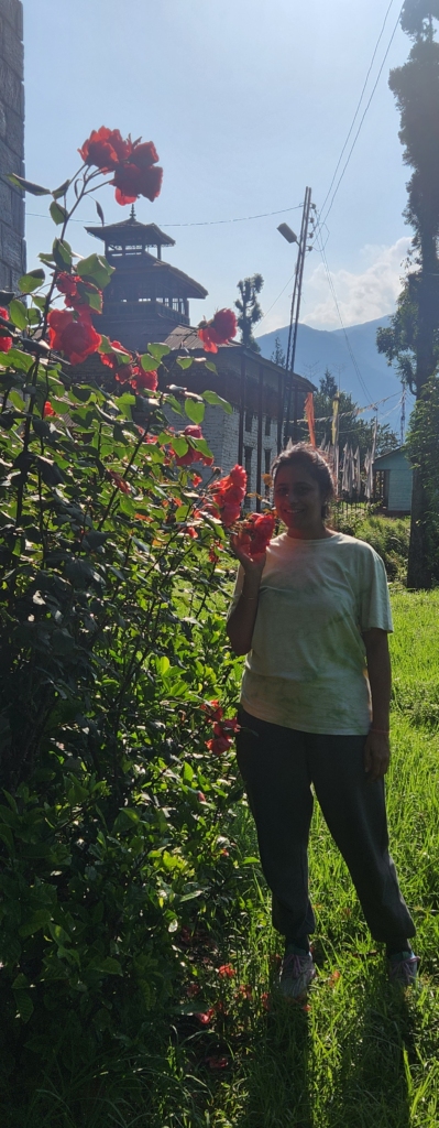 We had to coordinate our stay and travel arrangements from Gangtok. Fortunately, MunMun found a charming place to stay close to our Chimney homestay for the interim. However, we soon discovered that finding a taxi with a West Bengal number plate to travel from Gangtok to Chimney was proving to be an impossible task – a nuisance that both State Governments should address for the convenience of tourists. Local taxi operators often exploited the situation, quoting exorbitant fares and offering unreliable service. Finally, Ashik, helped us to secure a taxi driver willing to pick us up from Rangpo, with Rohit agreeing to drop us there. The whole process drained us considerably. Sorting out stay and travel arrangements wouldn’t have been so nerve-wracking if I hadn’t been accompanied by two beautiful girls with brains. But as they say, “all’s well that ends well”.
