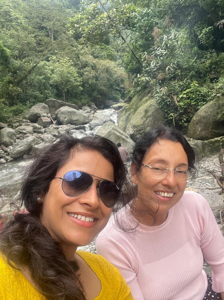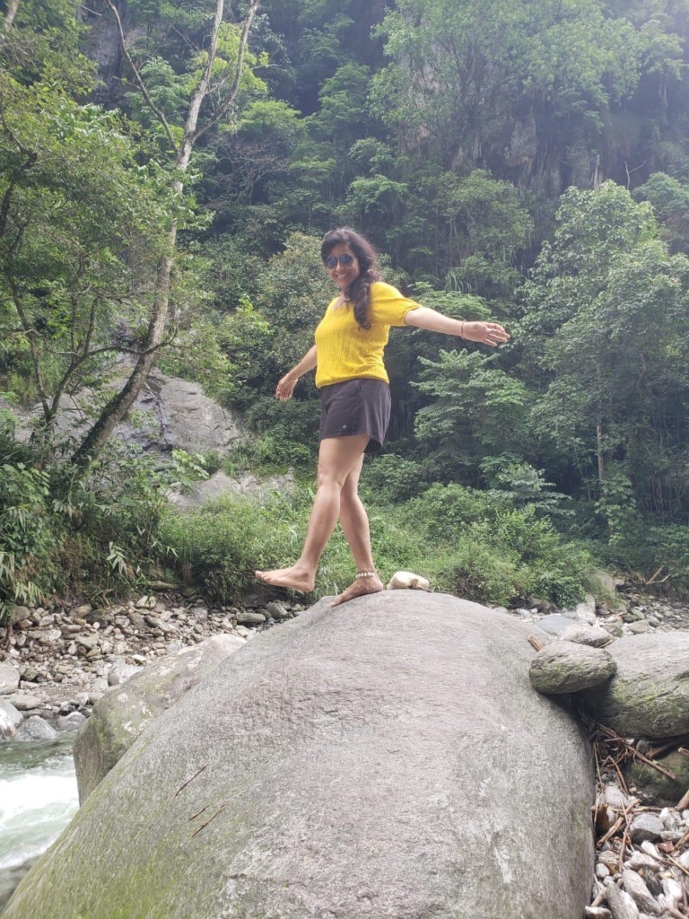 MunMun expressed a desire to take a dip, but we dissuaded her due to the strong river current. Nonetheless, the playful flow had created small pond-like structures between large rocks, where the other couples ventured in for a refreshing splash. The thrill of the river’s rushing waters against the stones awakened a childlike excitement within us. As we sat on the rocks, engaged in silent communion with the river, we found ourselves attaining a state of “nirvana” effortlessly – a perfect therapy for inner peace. We felt our minds melding with the natural world, our souls refreshed by the verdant tranquillity. It was an exquisite amalgamation of river, hills, and woods – the untouched, unseen beauty of Sikkim.