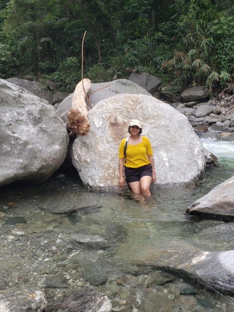 MunMun, Tazo, and I found a comfortable rock to settle on, dipping our legs into the river to enjoy the soothing melody of the Teesta tributary. We cautiously acclimatized to the cold water, submerging one leg before the other. The icy river water instantly awakened our senses, dispelling all traces of fatigue from body and mind. The cool breeze mingled with the river’s melody, creating a symphony of nature’s own.