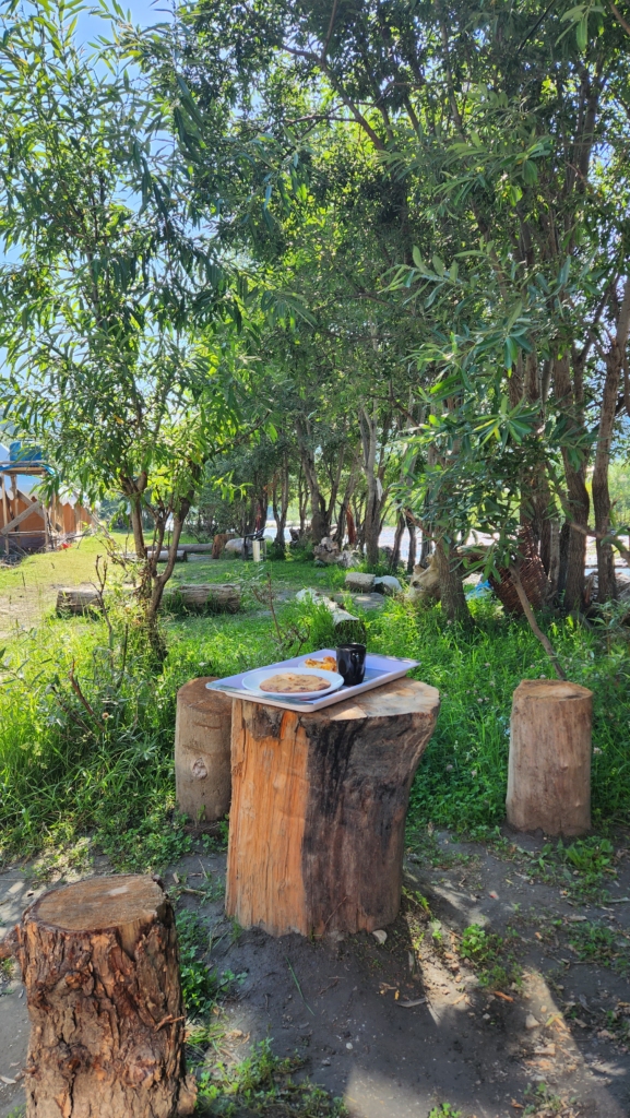 As the morning unfolded, the tantalizing aroma of breakfast wafted through the air. Iqbal, a master of his craft, efficiently handled the culinary preparations. Over the next three days, I converted a serene spot behind my tent, beneath the protective embrace of a tree, I relished my breakfast in the tranquillity of nature.