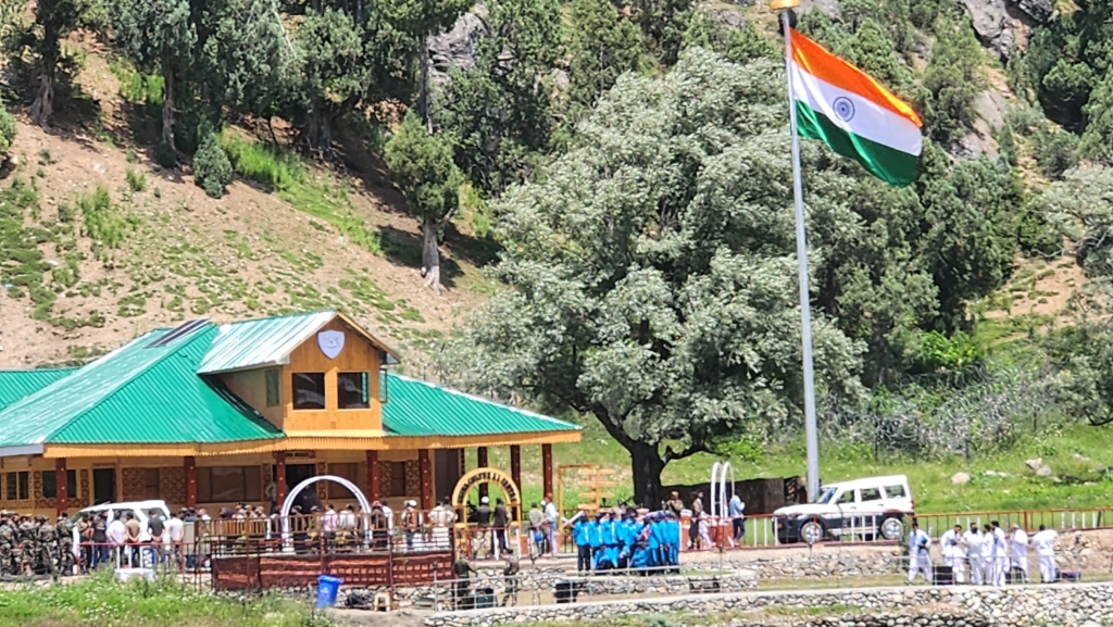 On the far right, a newly inaugurated museum building proudly displayed the Indian flag, fluttering high against the backdrop of the scenic view. In this LOC border town, the Indian national flag adorned every significant place, evoking a deeply patriotic sentiment uncommon in city life.