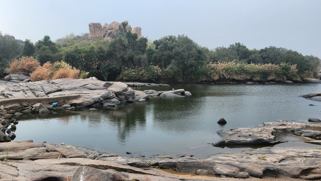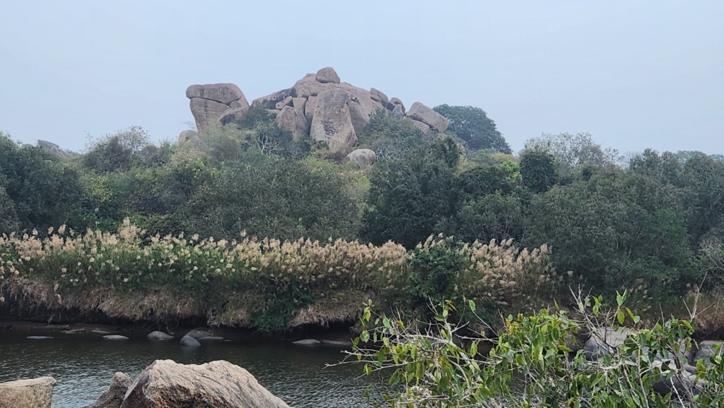 On the way back to Hippie Island, I decided to swing by Sanapur Lake. This natural beauty, surrounded by stunning boulder hills, is a sight to behold. The road to get there winds through paddy and banana plantations, then snakes around massive boulders hanging precariously over the road. The vibe at Sanapur Lake is something else – you can even hop on a coracle ride offered by the local villagers. Plus, it’s not overrun by tourists, which is a huge plus.
