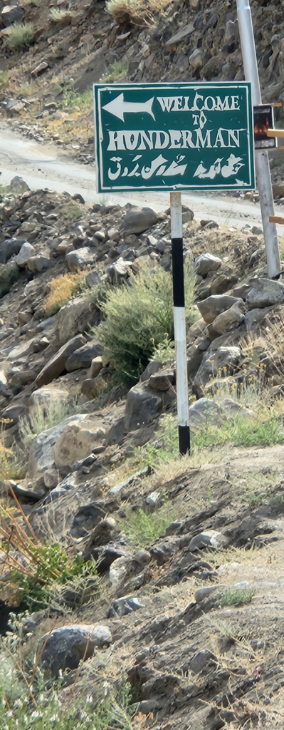 As we reached the Hundarman village, a wooden board near the village reads: