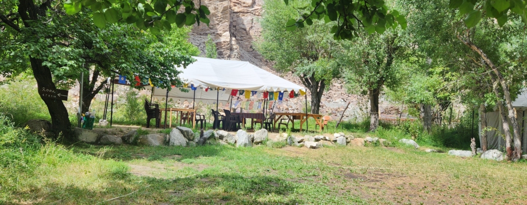 There was a resort across the river. Gopal called the resort to check if lunch was available. The cook answered the call and took pity on us and agreed to put together a simple lunch – dal and rice, if we could wait for half an hour. We agreed enthusiastically. We walked across the river through a long swinging bridge. With river Indus swirling below the bridge, it was a tensed walk across the bridge. The resort primarily served as a tent campsite for trekkers coming to the area. Sanjay, the cook was the only person holding the fort for the afternoon. All other employees were busy with afternoon siesta.