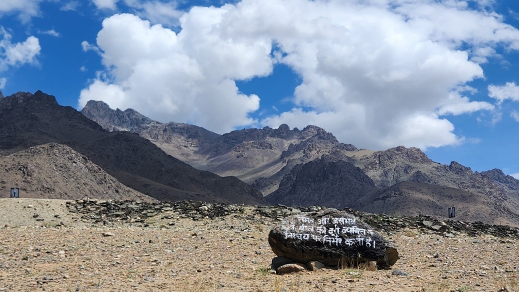 The board also reveals that the “Hundarman – Museum of Memories” project is a collaboration between Roots Collective (a non-profit organisation based in Kargil) and SWS CEPT University, Ahmedabad, to preserve the history, culture, and memories of the border settlement through oral narratives and recovered artefacts.