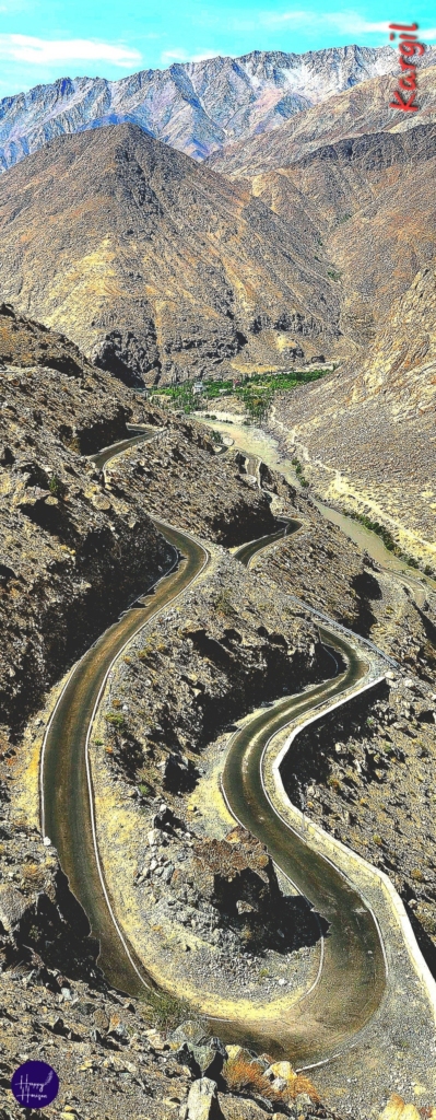 As we gained height we could see the entire Kargil town and river Suru meandering around the hills after merging with river Drass. Drass river joins Suru further about 7 kms. north of Kargil, which then enters POK and merges with Indus river.