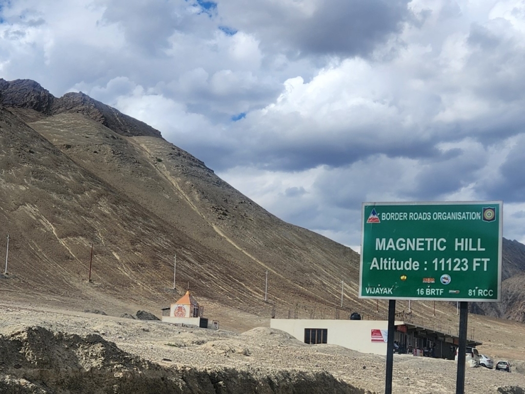 The Magnetic Hill is one of the leading advertisement to attract tourists to Ladakh. It is a wide open stretch of a road at an altitude of 11,123 ft., surrounded by tall mountains. You can leave your car in neutral gear with the ignition turned off on the Magnetic Hill, it will appear as if the car is moving, as if a powerful magnetic force is pulling the vehicle uphill. The large mountain right in front of the road is said to be the source of this magnetic force.
