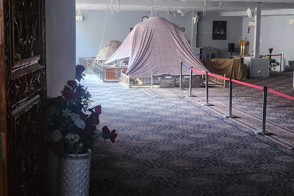 However, the boulder that the demon rolled down turned soft and melted and instead of hitting Guru Nanakji it took on Guru Nanak’s shape. In 1970, a boulder was discovered that is believed to be the one in the story with Guru Nanak’s shape still carved in it. A gurdwara was constructed to pay homage. We stopped to offer our prayers and seek blessings.