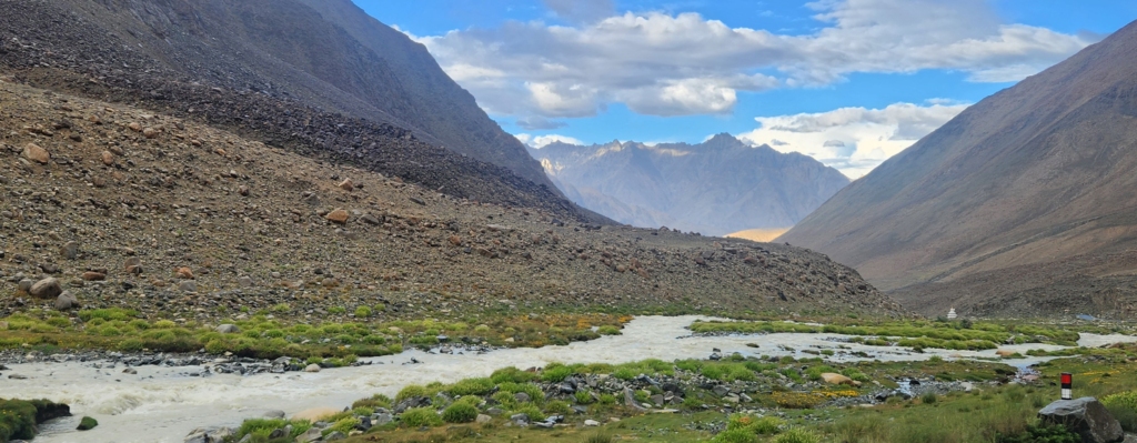 Still, I found myself drawn to the idea of Wari La. The allure of exploring a new, less-travelled route, with the promise of fresh vistas and Ladakh’s rugged beauty, tugged at my adventurous side. Danish, on the other hand, wasn’t as keen – he’d been driving tirelessly and preferred to stick with the familiar. I let him have the final say, and as we passed the diversion for Wari La, we decided to keep it simple and head straight for Merak via Leh.