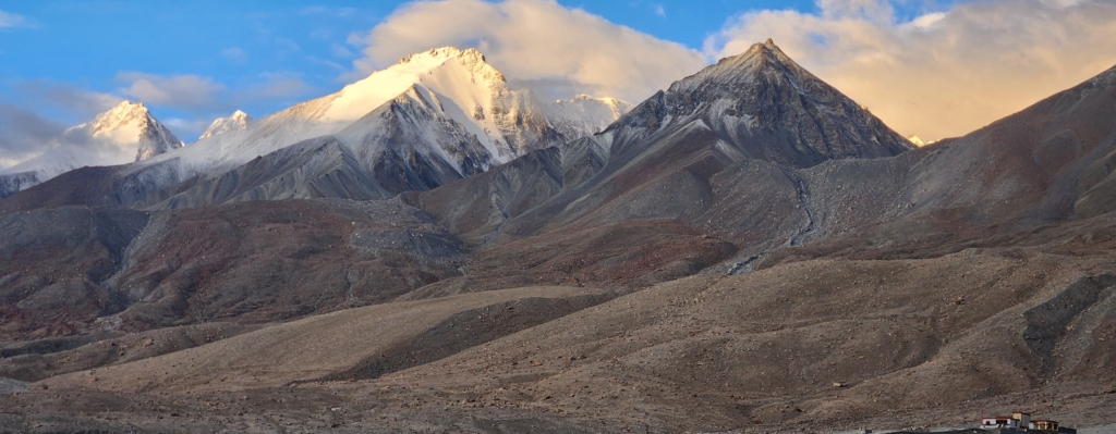 Along the way, we passed a few local villagers, their Pashmina sheep grazing peacefully against the backdrop of the valley. Black, hairy yaks meandered through the fields, a quintessential part of Ladakh’s landscape. Interestingly, the yaks here were noticeably slimmer compared to their bulkier counterparts we’d seen in Sikkim, perhaps better adapted to Ladakh’s harsher, more arid terrain. The sight of these hardy creatures, grazing in the shadow of towering peaks, reminded me of the timeless bond between the people, the land, and the animals that thrive in these high-altitude wildernesses.