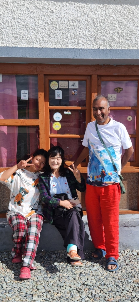 Just then, the South Korean teacher limped outside, eager to soak in the beautiful atmosphere. She was feeling much better. We gathered for breakfast together, snapping a few photographs with Sonam’s daughter. I shared some chocolates with her, and in a playful exchange, the South Korean teacher gifted Sonam’s daughter even more chocolates. It seemed to be her day, basking in the warmth and affection showered upon her.