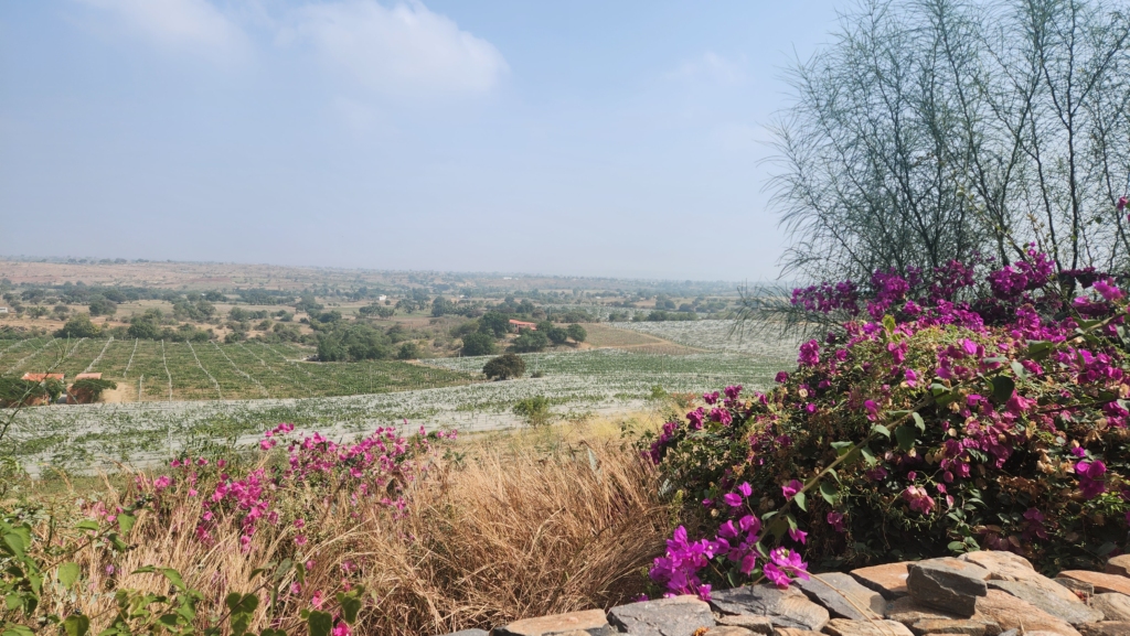 Just when I thought I’d mastered the art of wine-making and walked out of the building, I stumbled upon the vast vineyards owned by the estate, spanning over 100 acres, with about 50 acres currently in bloom. Naidu’s wisdom about the timing of grape harvests struck a chord, reminding us that it’s not just about plucking grapes but understanding their ripening rhythm. The black grapes take their sweet time to ripen compared to white ones. We even tried our hand at inspecting grapes like seasoned sommeliers.