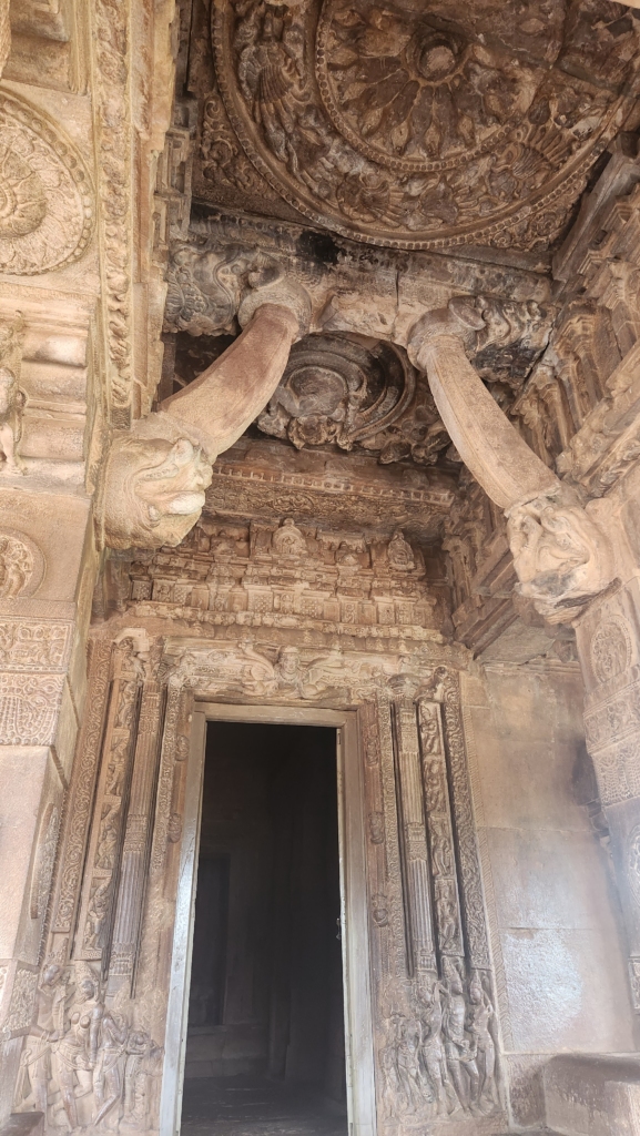 As Krishna guided us through the temple complex, he pointed out the majestic Malaprabha River flowing nearby, framing the temple complex beautifully. Pattadakal, nestled on the river’s left bank, was like a jewel set amidst red sandstone mountains. Turns out, the area was once known as Raktapura, the “Red City“, thanks to its iron and manganese-rich soil giving everything a fiery hue. Who knew geology could be so fascinating?
