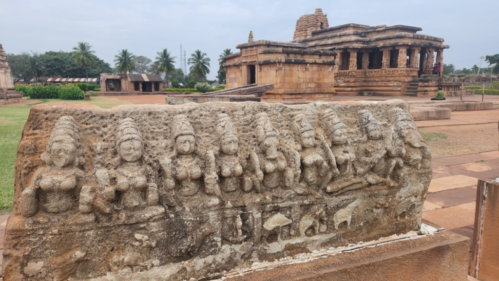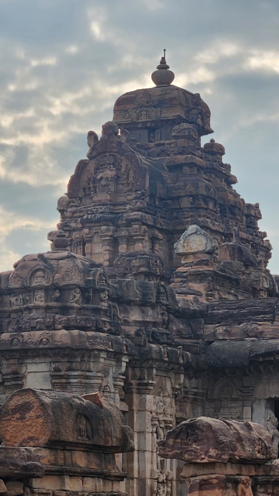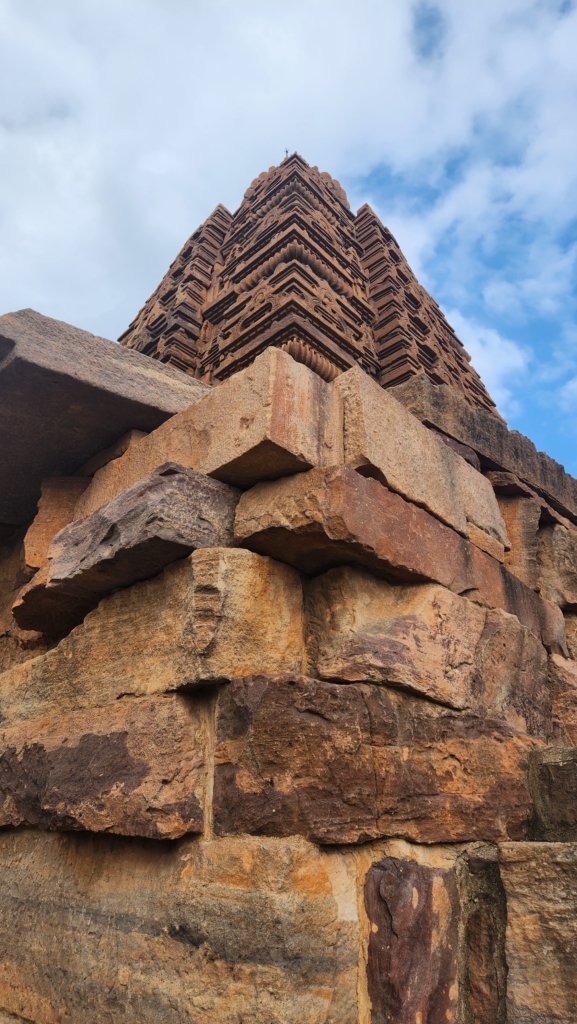 Krishna dropped some temple trivia on us, explaining how Pattadakal showcases two different temple styles from ancient India – one from the north, one from the south. He demonstrated the architectural styles and differences using drawings on the ground. The complex housed four temples of each style, along with the Papanatha Temple, which blended both styles. The artisans back then were like ancient architects with a dash of mad scientist, fearlessly mixing and matching styles. Now, I won’t bog you down with all the architectural jargon, but let’s just say Krishna’s stick diagrams were on point!