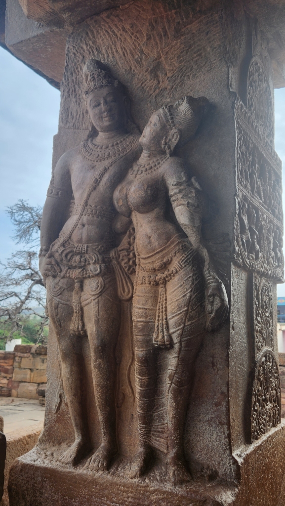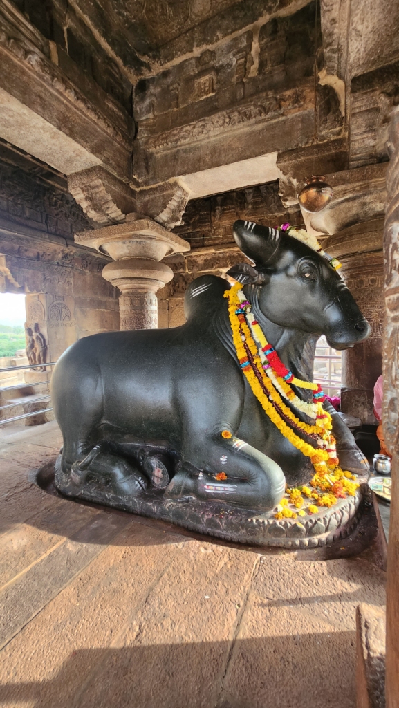 We admired the Nandi-mandapa and the colossal Nandi sculpture made of black granite. And just next door is the Mallikarjuna Temple, basically the Virupaksha’s twin, except slightly smaller. But wait, there’s more! Inside the complex stands this epic octagonal pillar, carved out of a single stone and boasting a Sanskrit inscription in not one, but two scripts! Talk about leaving a mark in history.
