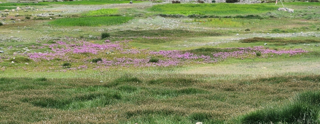 The name “Puga”, derived from the Tibetan word “pug-pa” meaning “the end of the mountains”. With mountains (although very small comparatively) all around, I wondered about the aptness of the name or it’s translation. We paused here, just for a moment, absorbing the tranquil, sprawling beauty. With patches of colourful wildflowers scattered across the grass, the valley had come alive in vivid hues against the soft green valley.