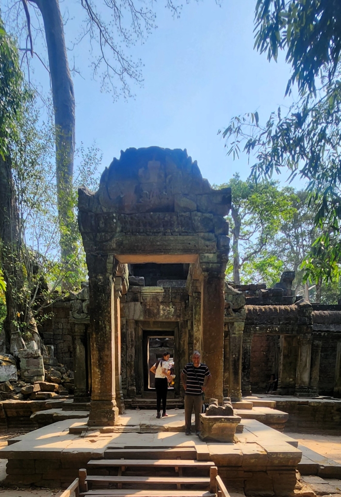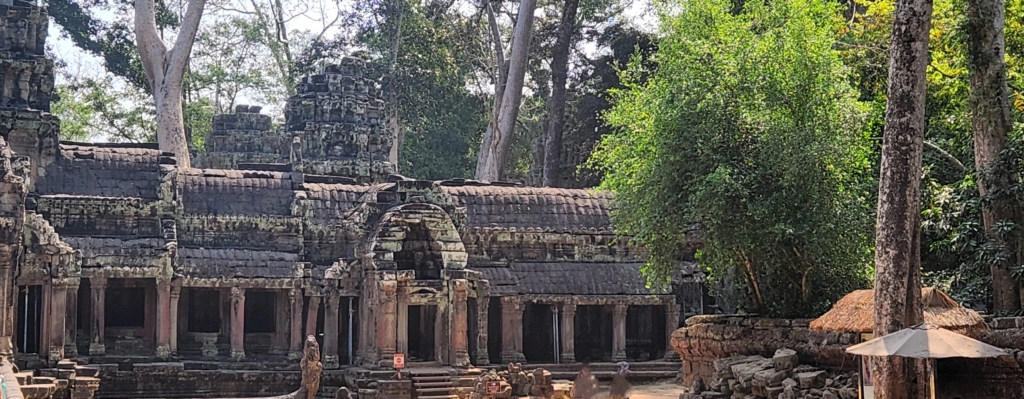 About 12 km. from the bustling streets of Siem Reap lies Ta Prohm, a temple like no other. Its name, translating to “Royal Monastery”, hints at its sacred origins, yet its haunting beauty is what truly sets it apart. By the 12th century, temple complexes had evolved beyond mere places of worship – they were also sanctuaries for monks, necessitating the construction of roofed halls and communal spaces.