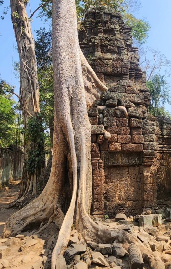 Mighty fig, banyan, and kapok (silk cotton) trees – some over 300 years old – rise imperiously from the walls, their roots sprawling like the tentacles of ancient, tree-living monster.