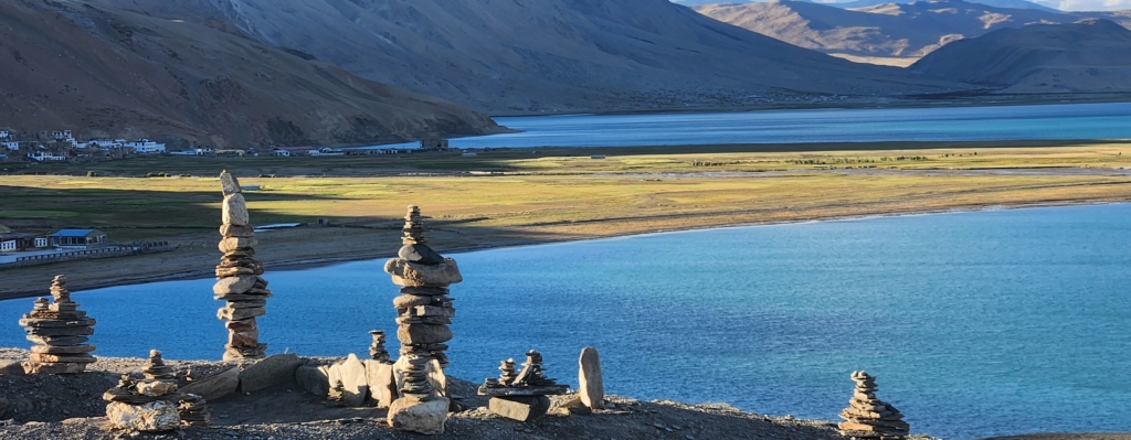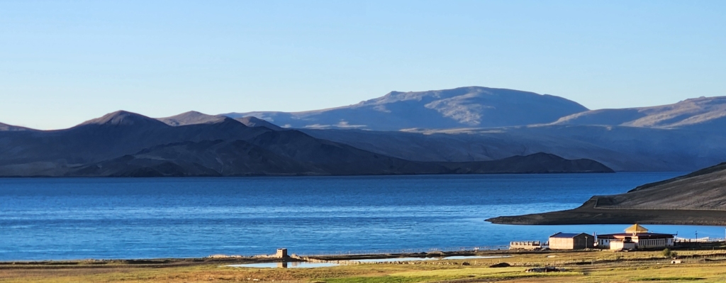 The quaint village of Karzok, or Korzok, sits nestled on a gentle hill beside the lake. Currently, all accommodations – be it tented camps, hotels, or homestays – are within the village itself, though new lodgings are appearing along the road close to the lake. I can only hope it doesn’t end up overdeveloped, as Pangong has been. Staying in the village, with its sweeping views of snow-capped mountains surrounding the lake, is an experience in itself. One word of caution, though – there is no cell service here.