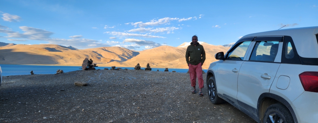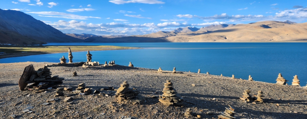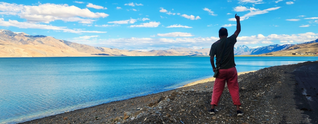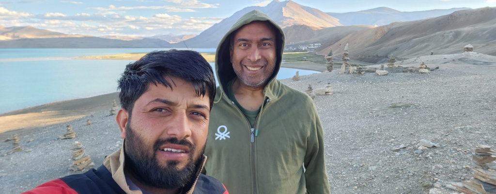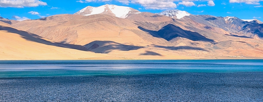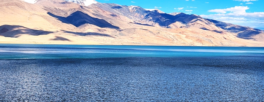 After a short drive from Kyagar Tso, we finally got our first glimpse of Tso Moriri – a stunning, dark blue sapphire cradled in starkly beautiful surroundings. Tso Moriri is undeniably one of the world’s most breathtaking sights. Stretching around 28 km. in length and set at an elevation of approximately 15,000 ft., it is Ladakh’s highest lake. Yet, in my mind, it stands unrivaled, even by the heights of Tsomgo Lake (Changu Lake) in Sikkim, which I visited earlier this year at 17,400 ft.