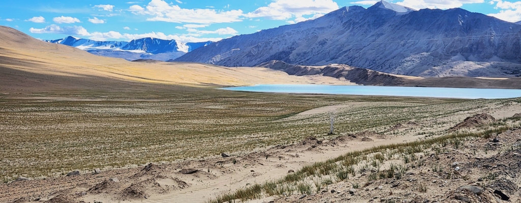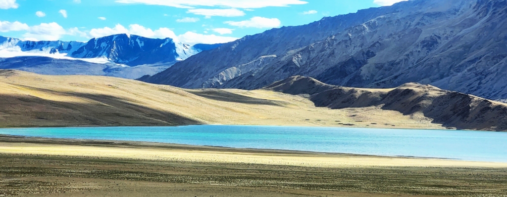 Then, like a jewel in the wilderness, a vivid blue lake appeared in the distance. We thought it might be Tso Moriri, but as we drew closer, we realized it was the smaller Kyagar Tso. Although small we couldn’t resist stopping to photograph this lake against the grand, silent mountains. The vast lake here hosts migratory birds. Sadly, we were a little early for the migration season – just one small miss in an otherwise unforgettable journey.