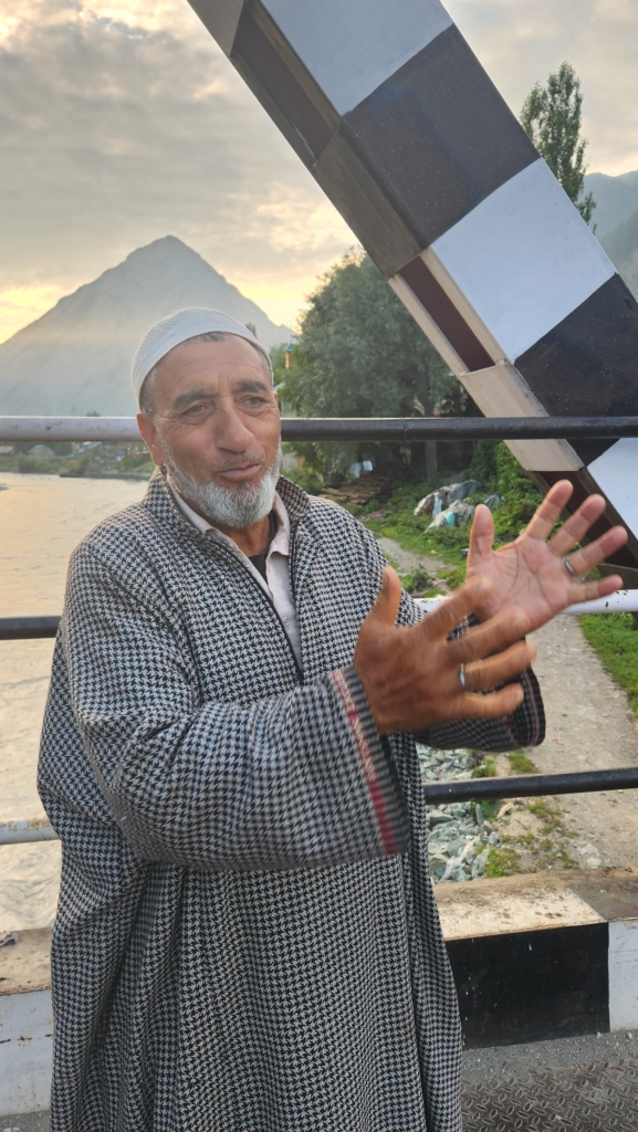 Near the check-post a chance encounter with a lively man in his 70s, transformed my aimless stroll. As we slowly traversed the bridge towards the market, we exchanged pleasantries.