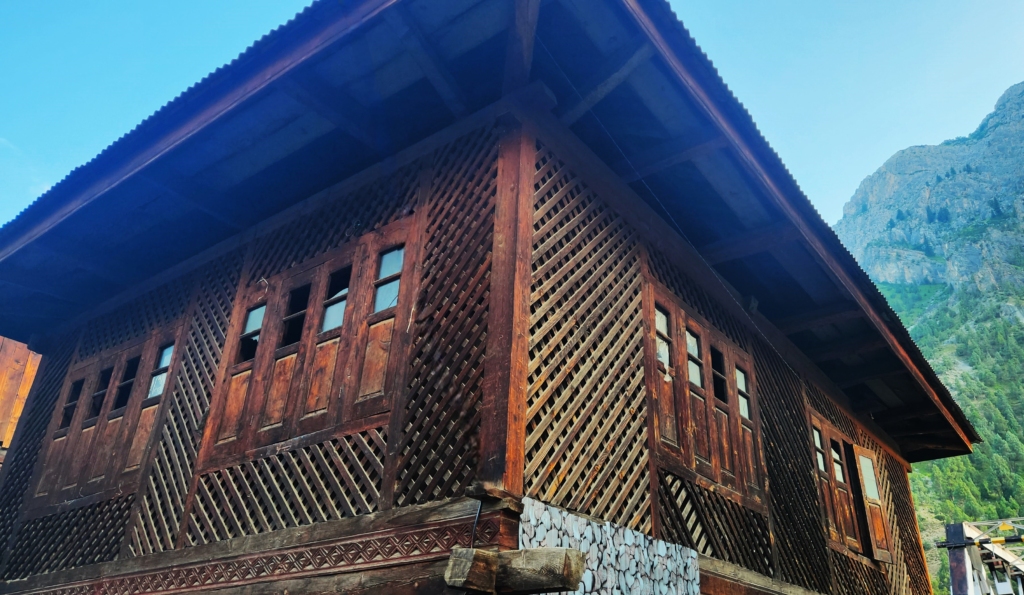 A wooden house adorned across the bridge on one side of the road, while a modern concrete mosque stood proudly on the other – a poignant tableau of eras gone by.