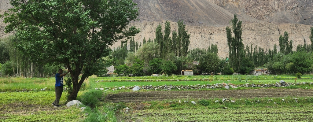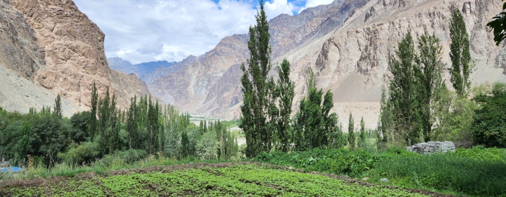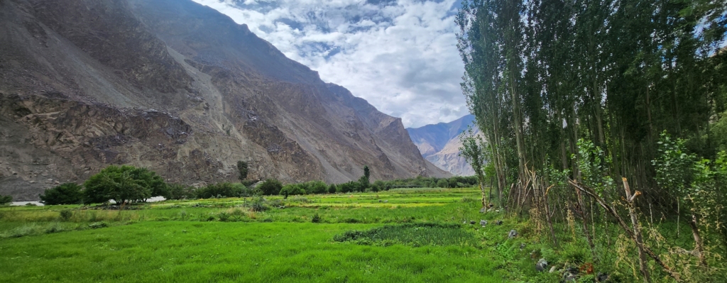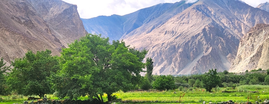 On the other side, I found myself enchanted by the fields of buckwheat and barley, nestled beneath the rugged majesty of the Saltoro mountains. The village’s natural beauty defied imagination, with the kaleidoscopic landscape leaving me utterly spellbound. The soaring mountain peaks, the powerful Shyok River, and the apricot orchards all contributed to the valley’s overwhelming charm.