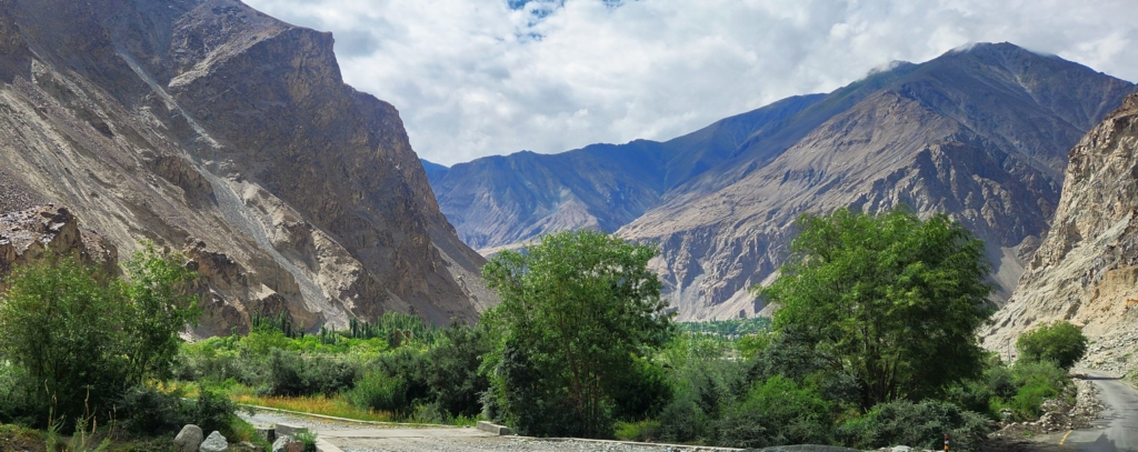 We stopped at Diskit for a quick lunch break. We also wanted to check with the local taxi drivers if the route to Merak (Pangong Tso) along the Shyok river had opened up for traffic. The drivers confirmed that the route was badly damaged and would take additional week or so. As we left Diskit and reached Khalsar, it was time to say good-bye to the Nubra valley on the banks of Shyok river.