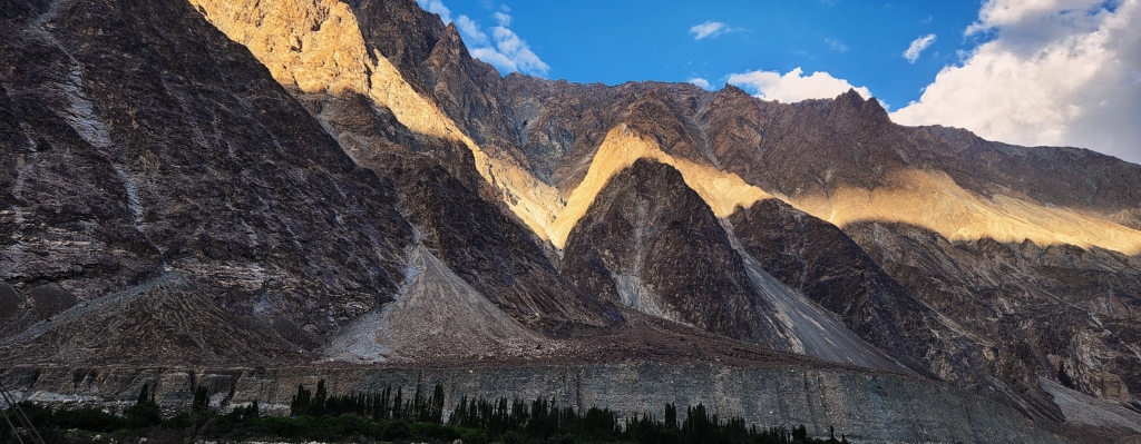Abbas had mentioned that during winter, you could see Ibex on the cliff, however, there were none now. As we stood on the banks of the river, the rocky Saltoro mountain range with its baldness was staring right at me from the other side of the river.