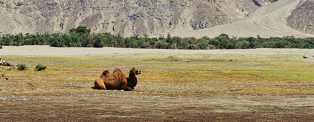 Hunder, perched at an elevation of about 10,000 ft., is a prominent location on the ancient Silk Route, bordered by snow-clad mountains that present a picturesque backdrop to the arid but mesmerizing landscape. I was amazed by the scenic beauty of the gorgeous silver desert dunes that stretched across the entire valley. Time seemed to stand still along with the stillness of the warm air of the desert valley. I could not take our eyes off the picturesque views.