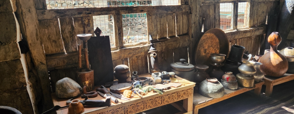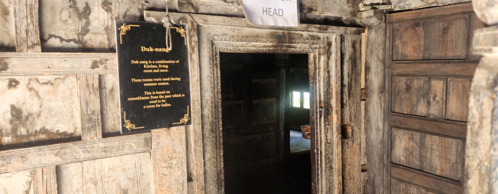 Inside, the ground level features several distinct rooms: the Balti (men’s living room), Duk-nang (kitchen and storeroom), and Nhyal-sa (rooms for women, particularly pregnant women). This made me wonder if the Hindi word “Nanihal” shares any connection with “Nhyal-sa”. Each room was equipped with small windows and a rudimentary heating system.
